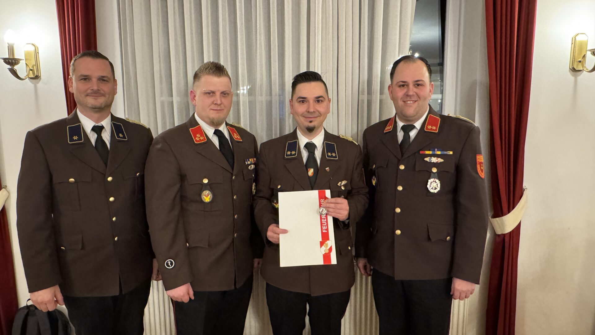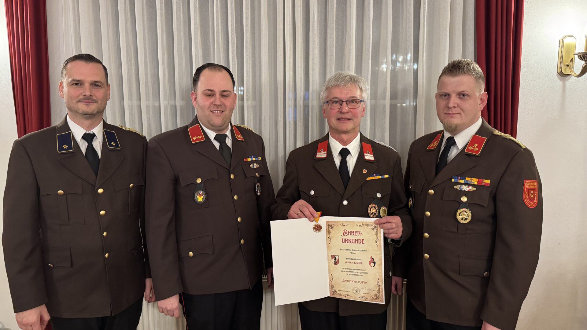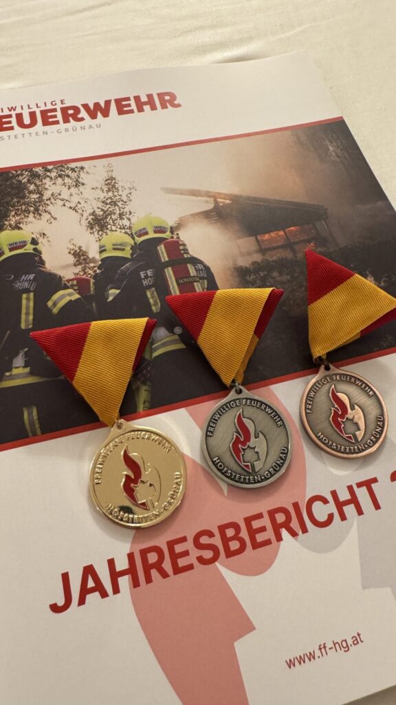Erstmals wurden zudem eigens designte Verdienstmedaillen unserer Wehr verliehen. Diese wurden in Bronze, Silber und Gold gestaltet und an Mitglieder vergeben, die sich durch jahrelange Tätigkeit und besonderes Engagement ausgezeichnet haben.