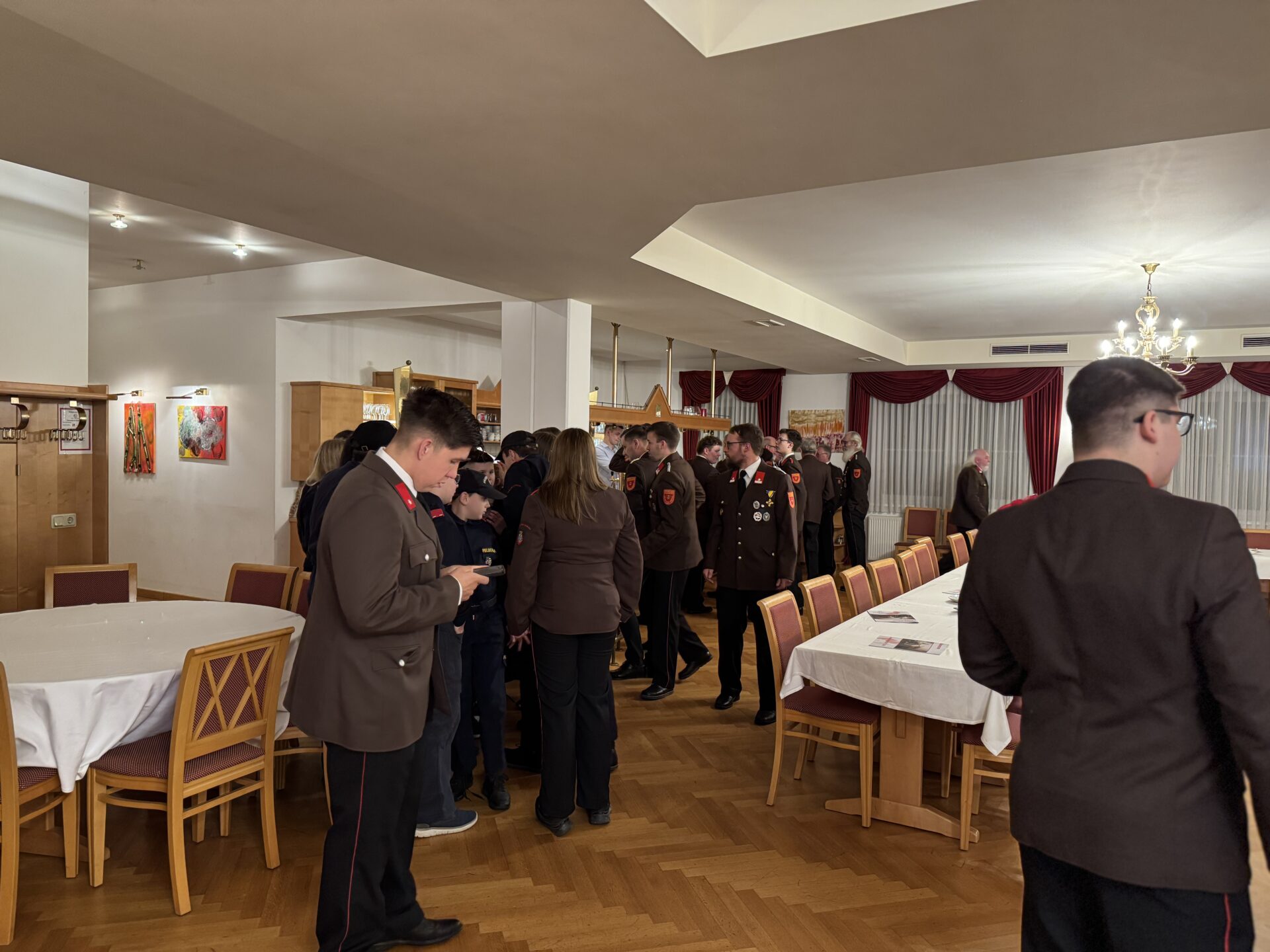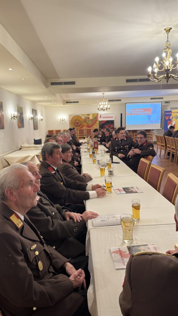 Auch mehrere Ehrenkameraden, darunter EBR Wilhelm Ertl, EOV Herbert Hollaus, EOBM Luger Gottfried sowie weitere Ehrenmitglieder, fanden sich im Gasthaus Strohmaier ein.