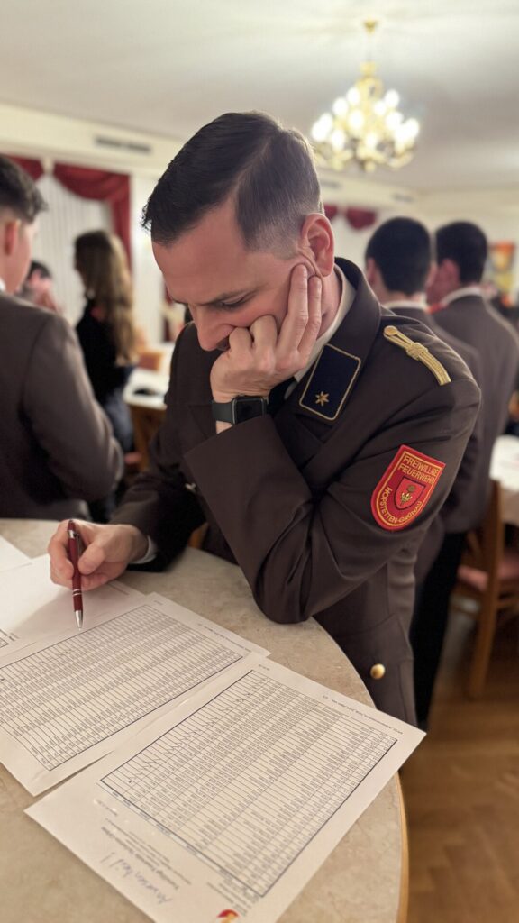 Nach dem Kassenbericht von V Stefan Handlfinger und der Vorstellung der Ein- und Ausgaben des Jahres 2025 forderte Vizebürgermeister Wolfgang Grünbichler die anwesenden Kameradinnen und Kameraden zum Wahlgang des Kommandanten und dessen Stellvertreters auf.