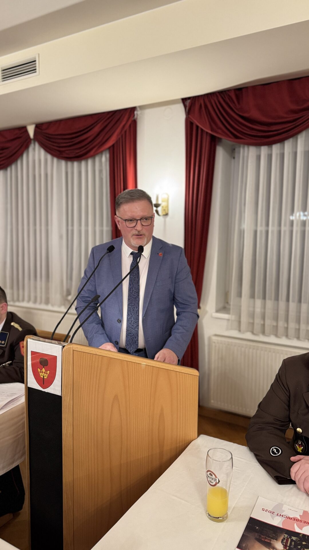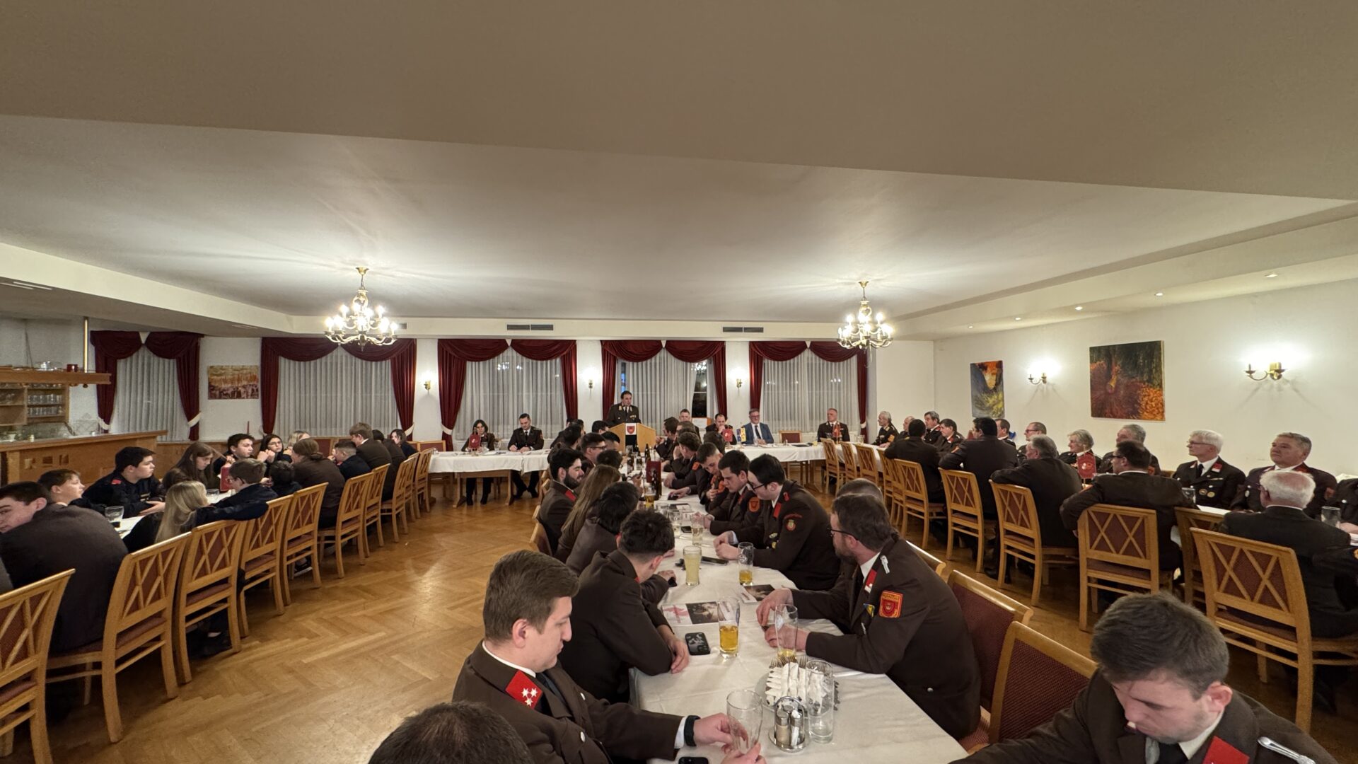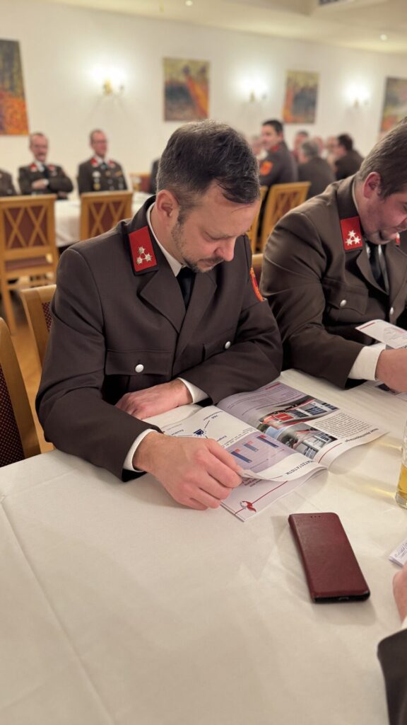 Zum Abschluss bedankte sich Kommandant HBI David Hollaus bei allen Mitgliedern, deren Familien für ihr Verständnis, sowie bei Unterstützern, Gönnern und Spendern des vergangenen Jahres und lud im Namen der Feuerwehr zu Speis und Trank ein.
