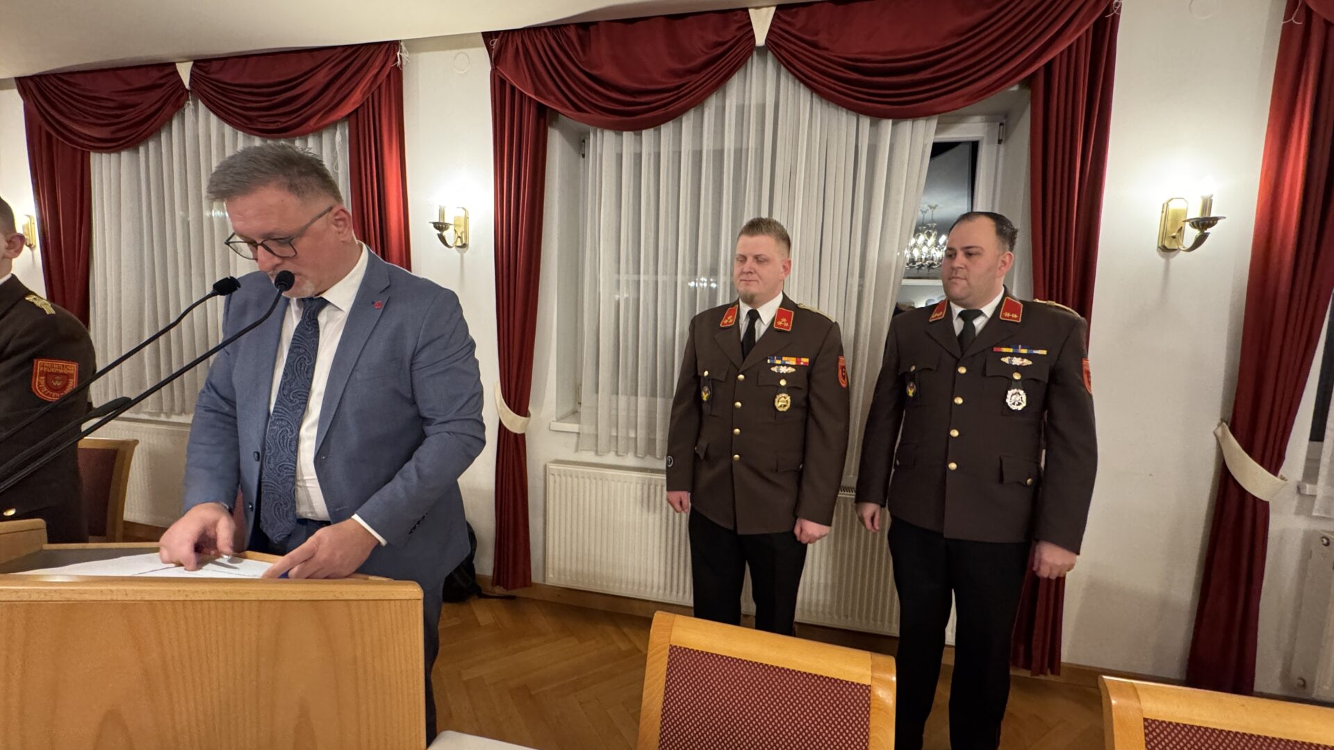 Auch zu OV Florian Fuchssteiner der sein Amt als Leiter des Verwaltungsdienstes zurücklegte wurde gedankt. Dieser bleibt allerdings als Sachbearbeiter Nachrichtendienst noch im Fachchargenbereich erhalten. BM Lorenz Moser der jahrelang als Zugskommandant tätig war wurde mit Dankesworten in den Normaldienst überstellt.