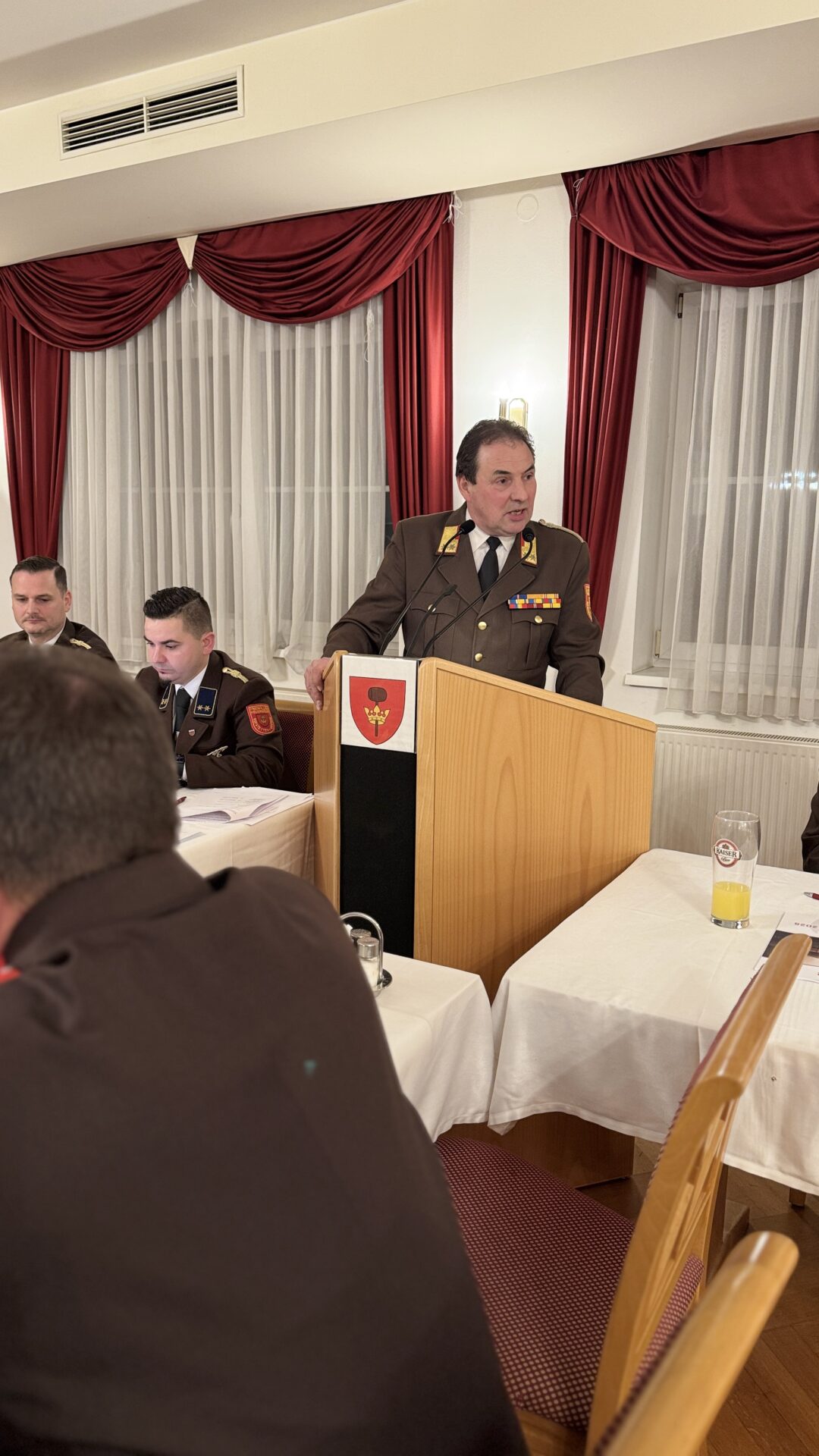Nach der Begrüßung des Kommandos, der Chargen und Fachchargen, der Feuerwehrjugend, der aktiven Mannschaft sowie der Reservisten folgte die Ansprache des Kommandanten mit dem Ablauf der Versammlung.