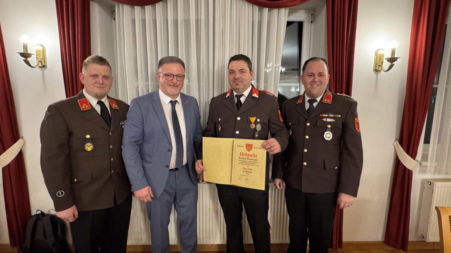 Seitens der Gemeinde wurde LM Manfred Steinkogler mit dem Ehrenzeichen in Bronze ausgezeichnet.