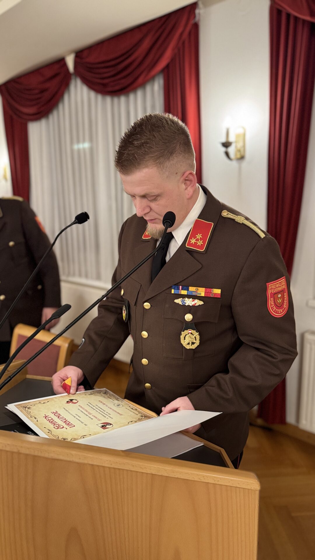 Nach der Angelobung durch Vizebürgermeister Wolfgang Grünbichler führte der Kommandant die Ernennungen und Beförderungen durch.