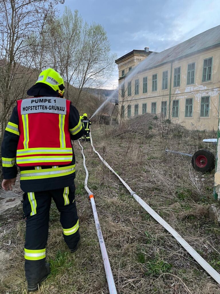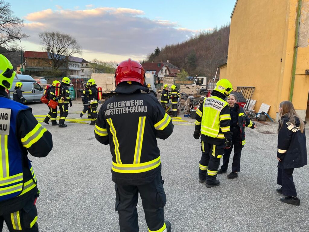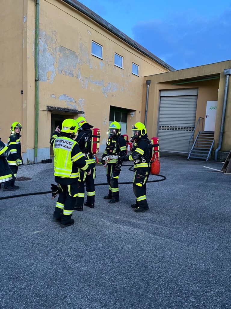 Als Übungsszenario wurde ein Brand im Obergeschoss mit eingeschlossener Personenrettung sowie ein Vollbrand einer Lagerhalle im Bereich der Pielach angenommen. Mithilfe von Bildern, die mittels KI mit realen Brandszenarien bearbeitet wurden, konnte die Lage für den Einsatzleiter noch realistischer dargestellt werden.
